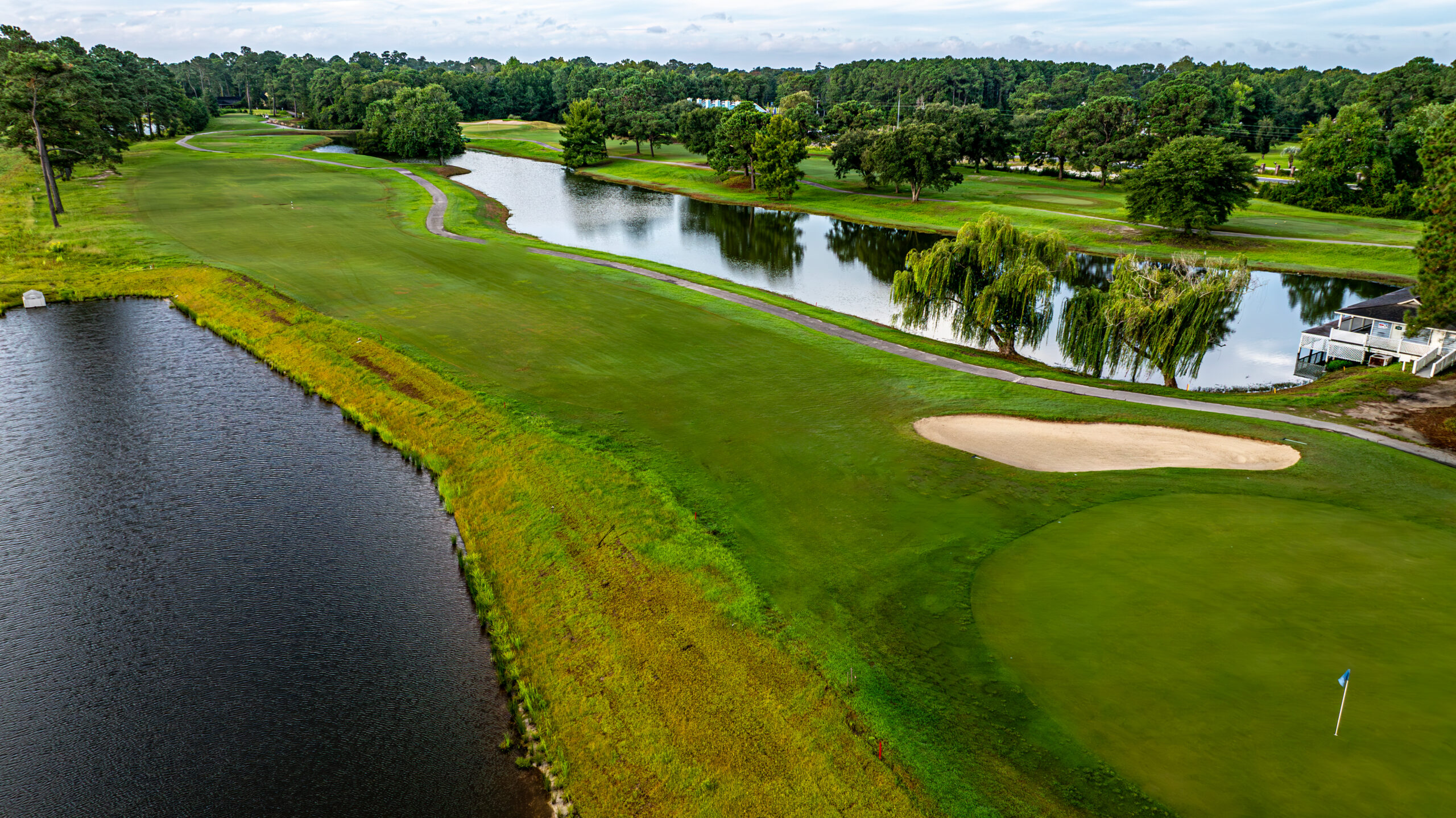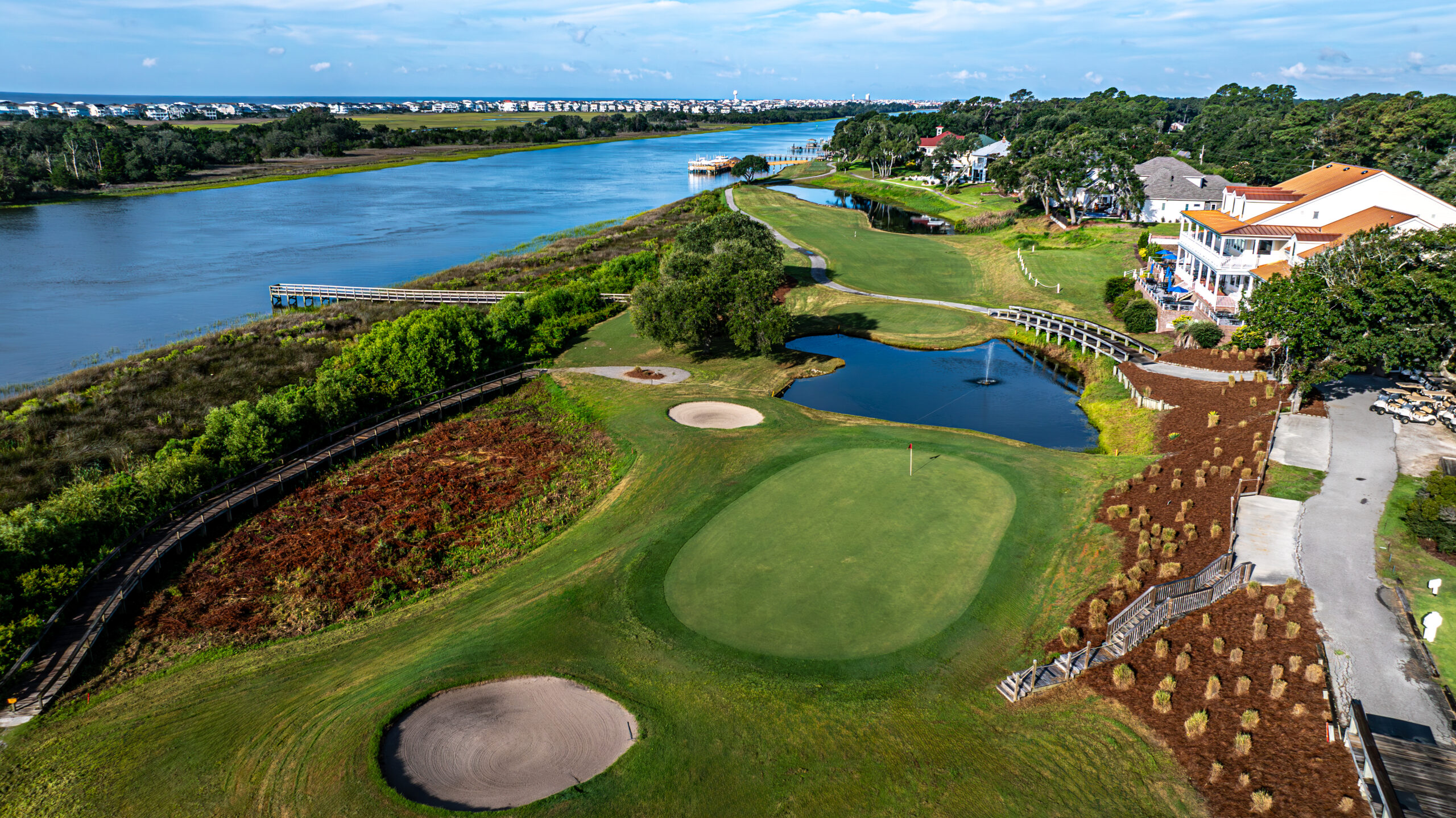 The Links at Brick Landing gives golfers a memorable coastal round in Ocean Isle Beach, with fairways that wind along the Intracoastal Waterway and marsh views that show up on several of the most scenic holes. Built in 1987 and designed by H.M. (Mike) Brazeal, the course has a true waterfront feel, with four back-nine holes bordering Sauce Pan Creek and views toward Ocean Isle Beach from holes 1 and 18. It is a recently renovated, links-style layout with Sunday Ultradwarf Bermuda greens, making it a strong pick for players who want both scenery and solid conditions.